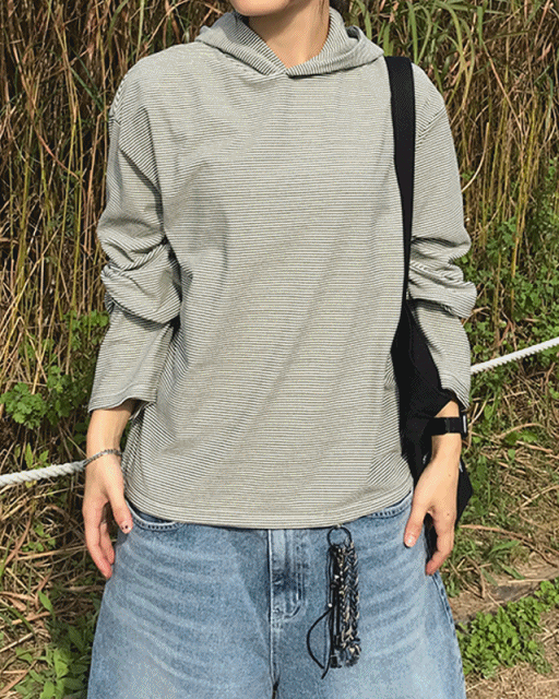 남녀공용 로디 스트라이프 크롭 후드 티 (2C)