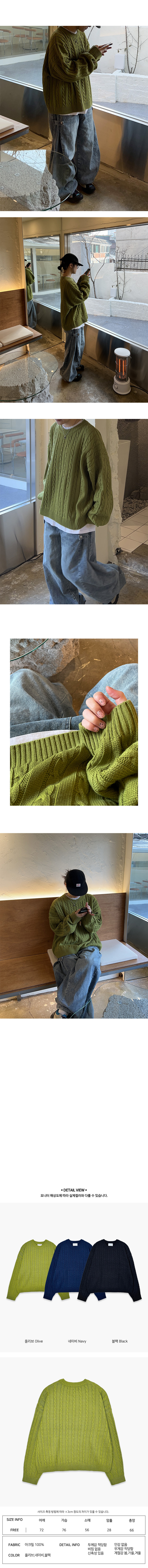 남녀공용 오스트 꽈배기 라운드 니트 (3color)