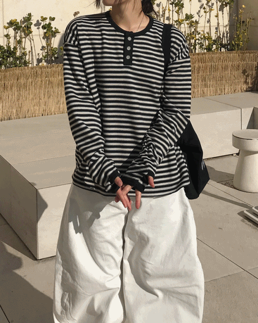 남녀공용 렌 기모 단가라 헨리넥 티 (2C)