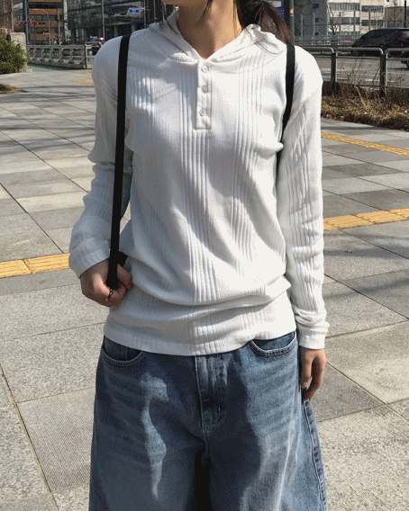 남녀공용 멜 골지 헨리넥 후드 긴팔 티 (4C)