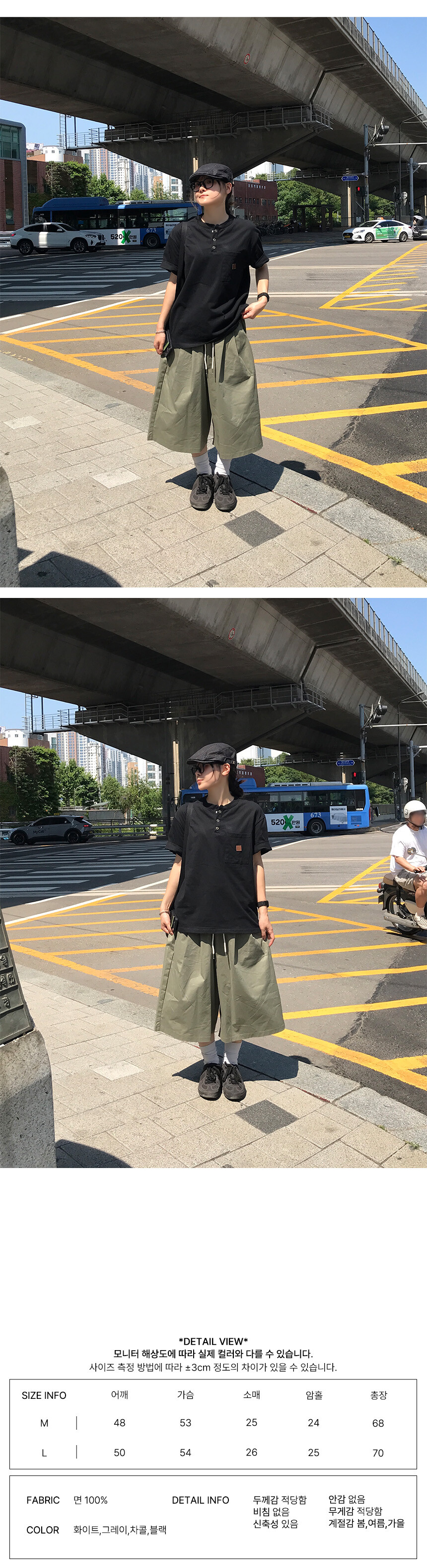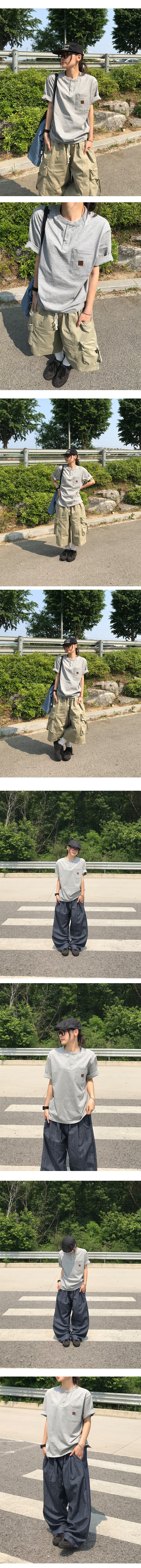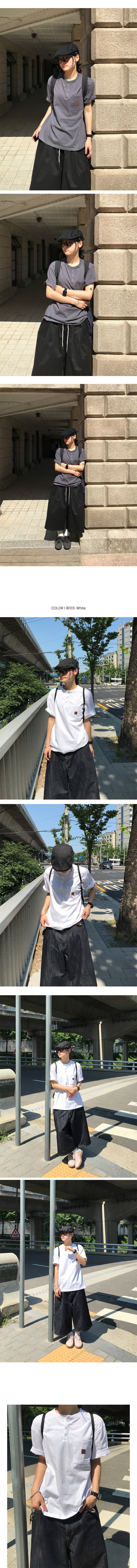 남녀공용 핀트 헨리넥 패치 반팔 티 (4color)