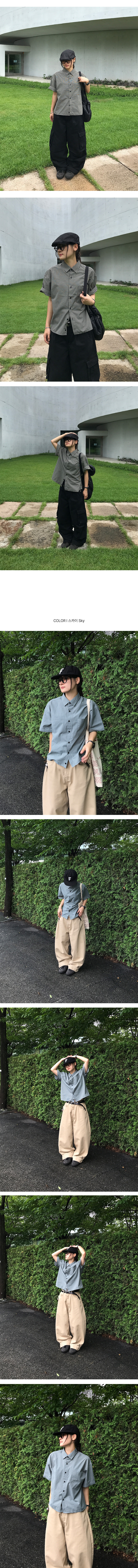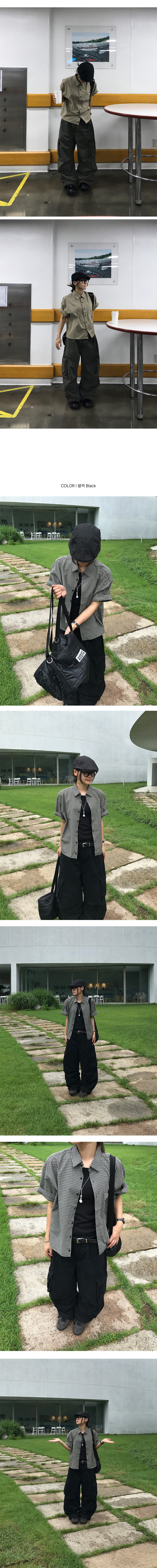 남녀공용 컨츄리 크롭 체크 반팔 셔츠 (4color)