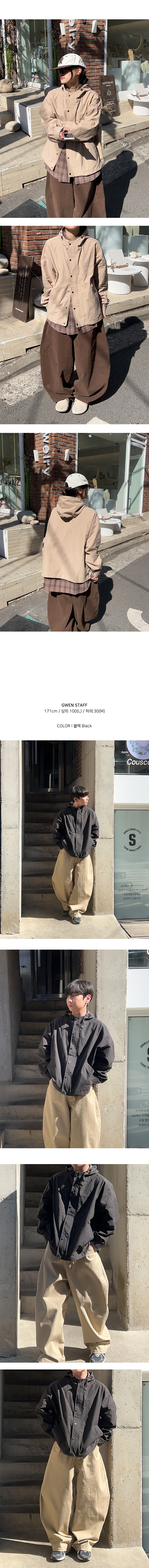 남녀공용 타코 배색 후드 야상 자켓 (3color)