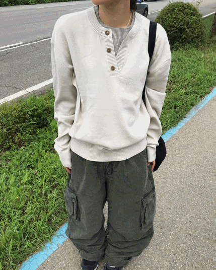 남녀공용 마드 레이어드 라운드 니트 (3color)