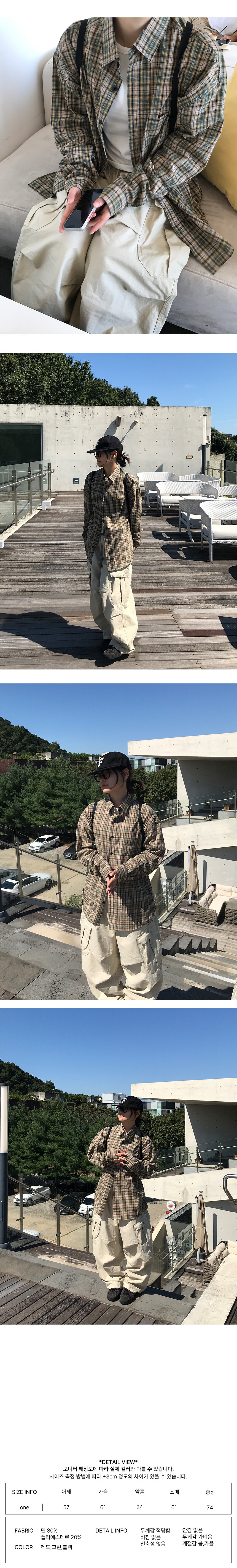 남녀공용 센니 오버핏 체크 셔츠 (3color)