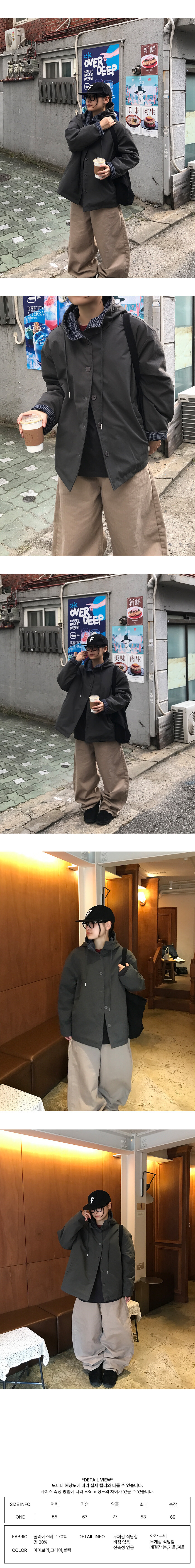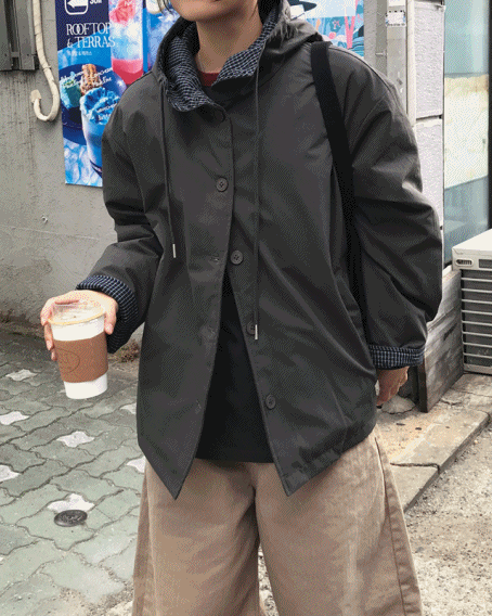 호핀 체크 배색 오버핏 후드 점퍼 (3C)