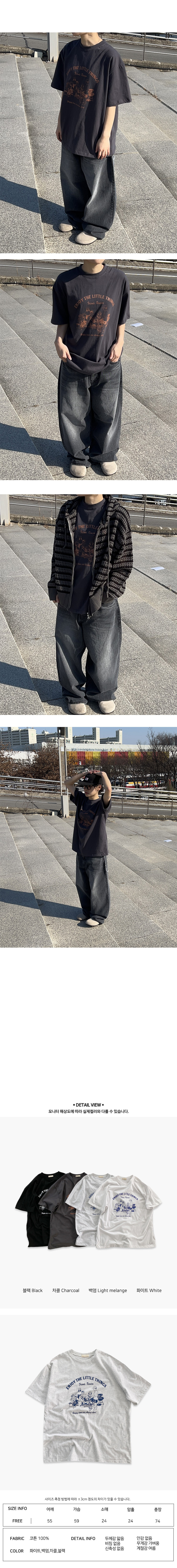 남녀공용 레토 엔조이 프린팅 반팔 티 (4color)