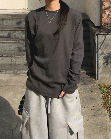 남녀공용 페인드 골지 긴팔 티 (4C)