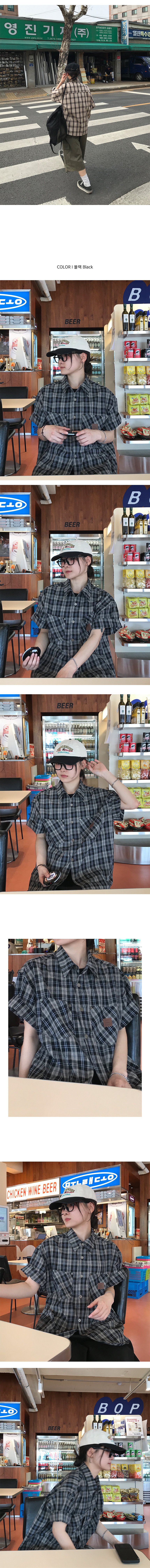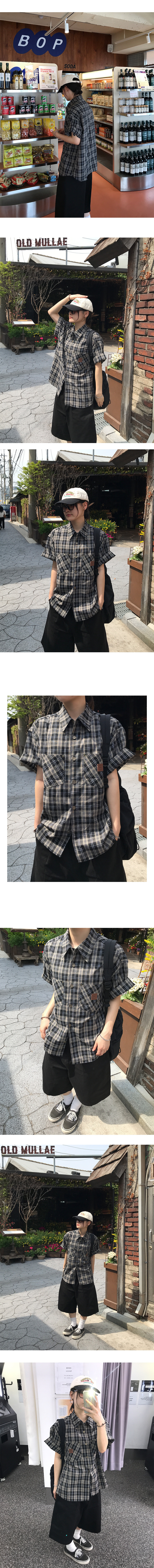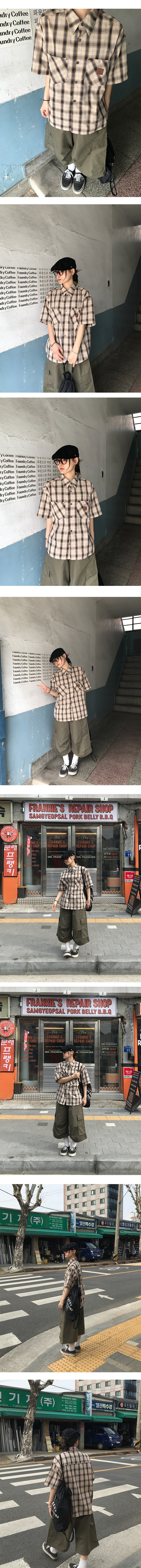 남녀공용 키메이 포켓 패치 체크 하프 셔츠 (3color)